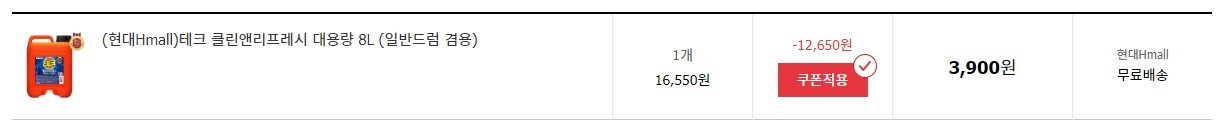 테크 파워 액체세제 8L 쿠폰 사용하여 3,900원에 샀다.