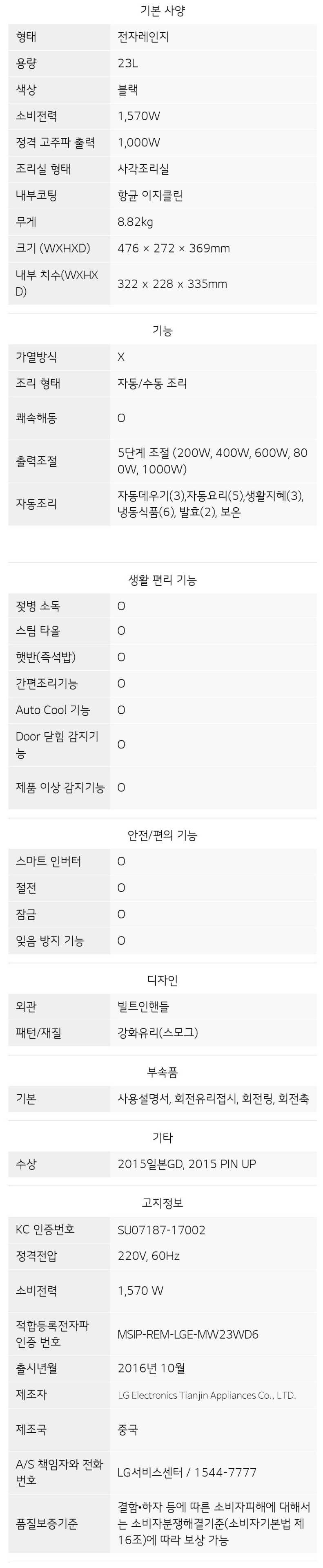 5. 잊음방지기능이 있다. (삼성은 있는지 없는지 모르겠다. 있을 것 같은데 제품설명에는 안나와있다. 삼성 MS23K3513AW 기준)