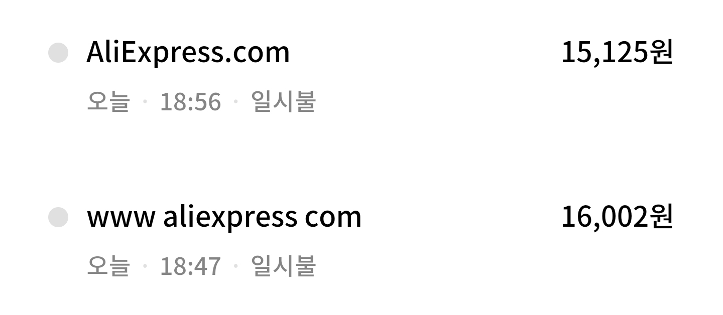 알리익스프레스는 항상 결제할 때마다 헷갈려서 같은 결제를 2~3번 반복하게 된다.